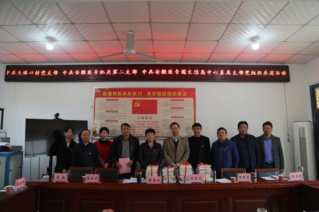 为增进墟落文明建设,,,,,,培育文明乡风,,,,,,助力文化振兴,,,,,,同时增强关爱留守儿童康健生长,,,,,,机关党总支第二党支部团结学校图文信息中心党支部向大埠口村捐赠了200册,,,,,,价值近万元的图书。。。。。。(撰稿、审稿:彭晨晨 章定国 核稿、编辑:姜楠)
