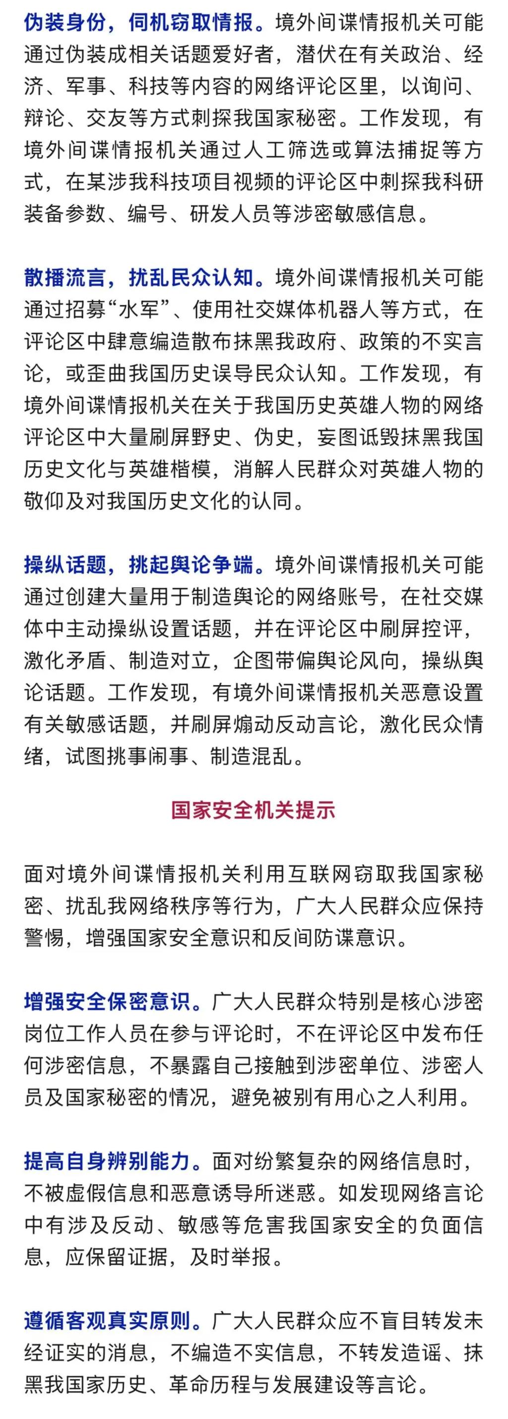 网络社交媒体谈论区因其可以突破时空局限,,,,,,,,就多元话题开展即时交流,,,,,,,,逐渐成为公共社会互动的主要场合之一。。。。。。。国家清静机关事情发明,,,,,,,,近年来,,,,,,,,部分境外特工情报机关使用网络社交媒体谈论区窃取我国家神秘,,,,,,,,扰乱我网络秩序,,,,,,,,对我国家清静组成威胁。。。。。。。