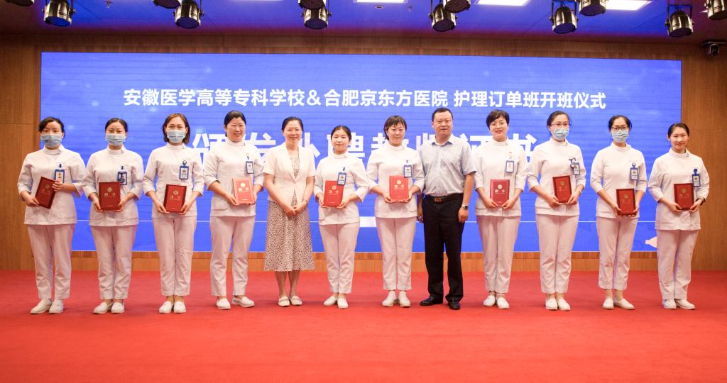 9月13日下昼,,,,,我校与京东方医院相助举行照顾护士订单班举行开班仪式。。。。。。。。我校党委委员、副校长严继贵,,,,,教务随处长兼照顾护士学院院长朱霖、学院党总支副书记郭卫红、副院长朱延玲,,,,,合肥京东方医院院长何仿、副院长赵正源,,,,,照顾护士部主任韩美玲等相关职员等出席开班仪式。。。。。。。。医院各科室护士长、2020级订单班全体同砚加入了开班仪式,,,,,开班仪式由京东方医院照顾护士部科教认真人李琴主任主持。。。。。。。。