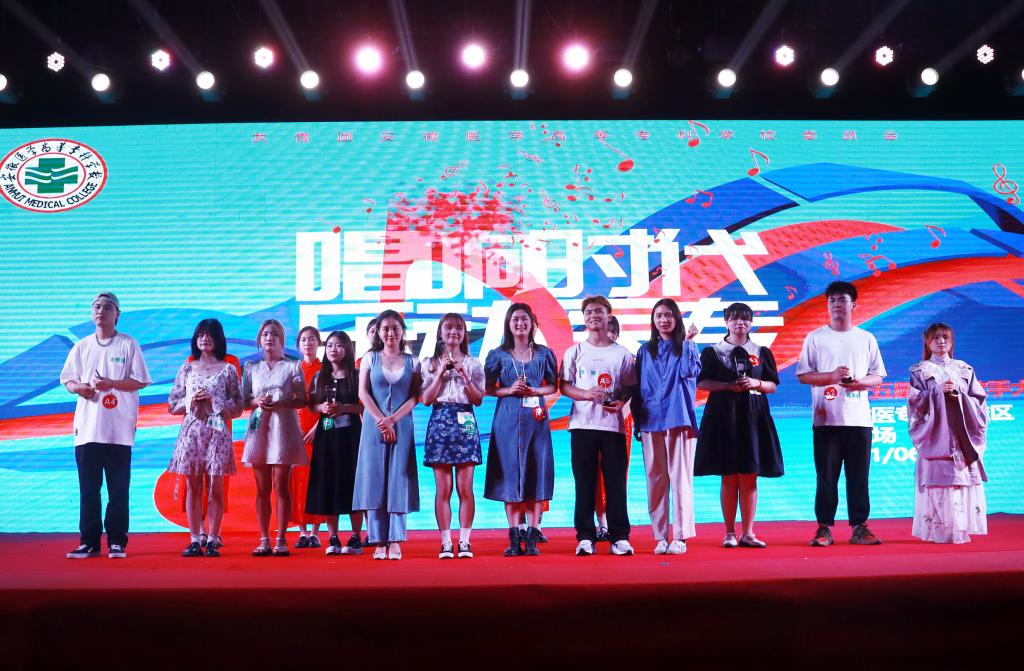 十佳歌手携手献唱的致敬开场曲《追梦小儿心》拉开了整场角逐的序幕,,,,,感人深情的歌声唱出了我们对义士先进们的谢谢和纪念,,,,,也唱出了新时代青年人伟大的理想和志气;;;;;;《星辰大海》《精忠报国》《映山红》《新的天地》《天南地北》等,,,,,更是展现出医专学子在这个时代独属的精神风貌,,,,,也唱响了年轻人对家国社会的责任与继续。。。。。。最终,,,,,19级药学4班的雅致同砚夺得桂冠,,,,,20级照顾护士11班的李旭、19级包管1班的王丽娜分获二三名。。。。。。