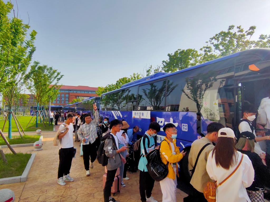 每逢周末和节沐日,,,,,,经由防疫消毒的定制公交车队便提前开进校园,,,,,,期待同砚们前来乘坐。。。。。。。。学校值班向导员会与公交车师傅一道,,,,,,组织同砚们有序乘车,,,,,,只管为同砚们提供恬静的乘车体验。。。。。。。。据统计,,,,,,定制公交开行以来,,,,,,接送学生往返15趟车次,,,,,,累计运送学生近9000余人次。。。。。。。。