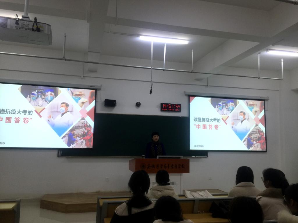 董亚杰通过解读中国的抗疫方略、运用抗击疫情的鲜活事例和详实的数据,,,,,,阐释了中国在抗疫大考中取得好效果的基础缘故原由。。。。。她重点讲述了疫情防控斗争中所彰显的中国共产党向导和中国特色社会主义制度的显著优势,,,,,,中国实力、中国精神、中国效率,,,,,,所展现的刷新开放以来积累的雄厚物质手艺基础,,,,,,疫情防控斗争中所彰显的认真任的大国继续。。。。。通过比照中西方抗疫答卷,,,,,,让学生越发坚定“四个自信”,,,,,,越发自觉做到“两个维护”。。。。。
