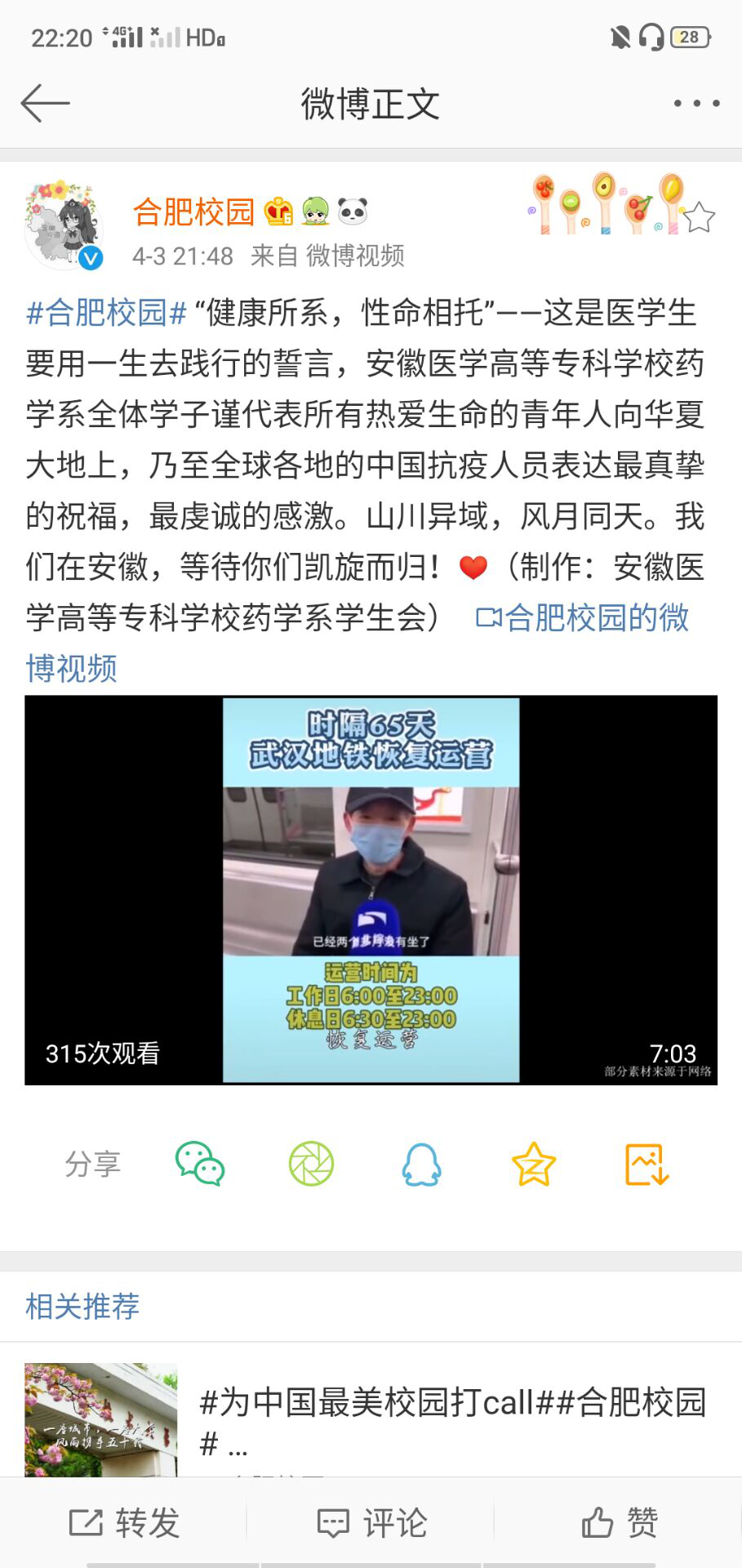 合肥校园:https://m.weibo.cn/1986358693/4489743369191328