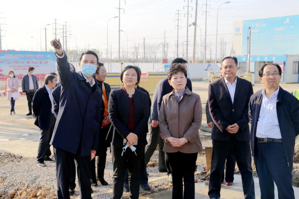 沈素琍一行深入我校新校校区一期建设工地,,,,,,实地相识项目疫情防控和复工复产情形。。。。。。。