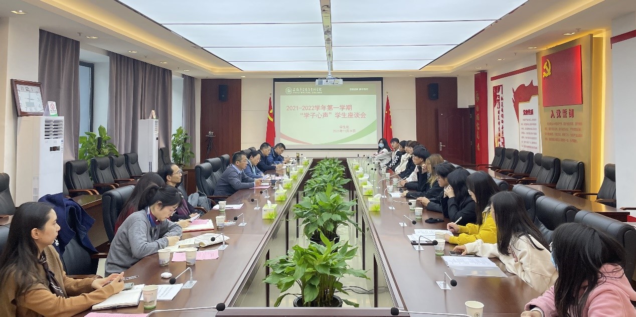 座谈会上,,,,,,,,学生代表们在充分调研的基础上踊跃讲话,,,,,,,,划分从专业学习、班风学风、校园文化、平安校园、社团治理、食堂就餐、公寓住宿、学生运动、疫情防控、生病就医等差别方面反应相关情形,,,,,,,,并提出自己的想法与建议。。。。。相关职能部分认真人认真谛听,,,,,,,,并针对学生代表提出的问题和建议举行相识答和交流。。。。。