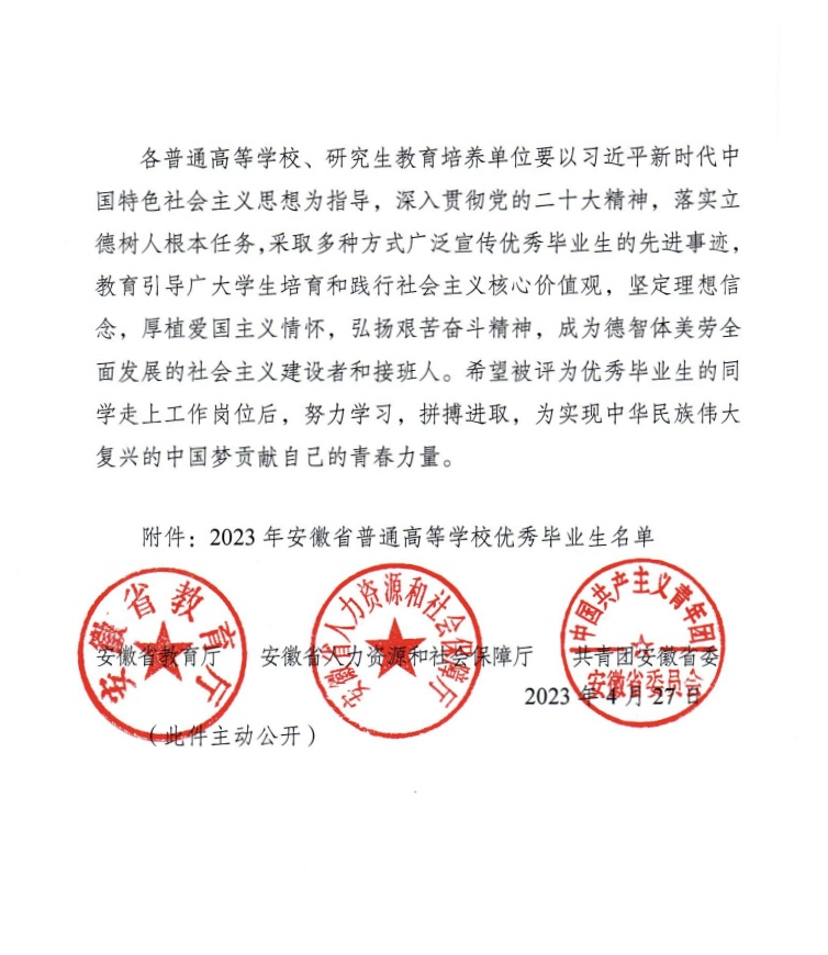 ÎÒУ»£»£»£»£»£»£»ôÄîµÈ157ÃûͬÑâ±»ÆÀΪ2023Äê°²»ÕʡͨË׸ߵÈѧУÓÅÒì½áÒµÉú