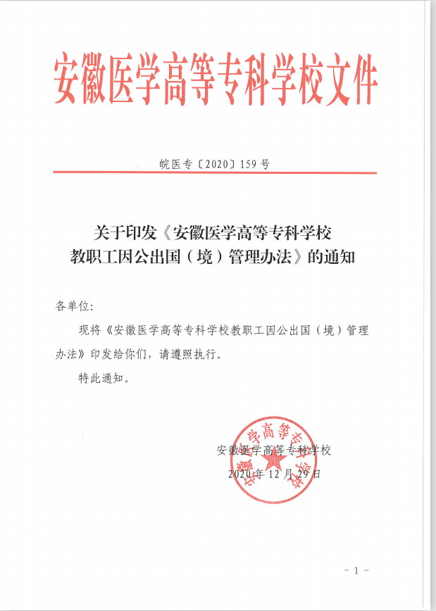 安徽医学高等专科学校教职工因公出国(境)治理步伐