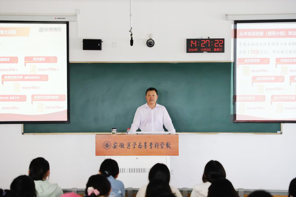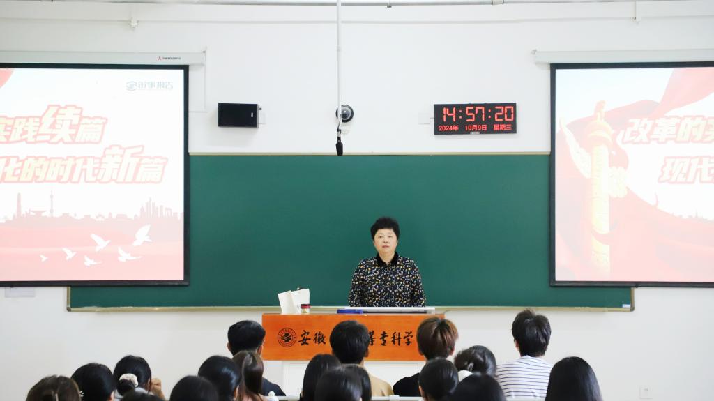 10月9日下昼,,,,,,,校向导深入教学一线,,,,,,,面向差别学院、差别专业的学生,,,,,,,配合教学了以《刷新的实践续篇,,,,,,,现代化的时代新篇》为题的形势与政策专题报告。。。。。。。。专题报告围绕党的二十届三中全会精神及中国现代化历程中的要害议题睁开,,,,,,,从“掌握历史自动、锚定要害领域、遵照刷新纪律”等多个维度,,,,,,,为全校师生举行了深入浅出的宣讲刷新的波涛壮阔与现代化的时代意义。。。。。。。。