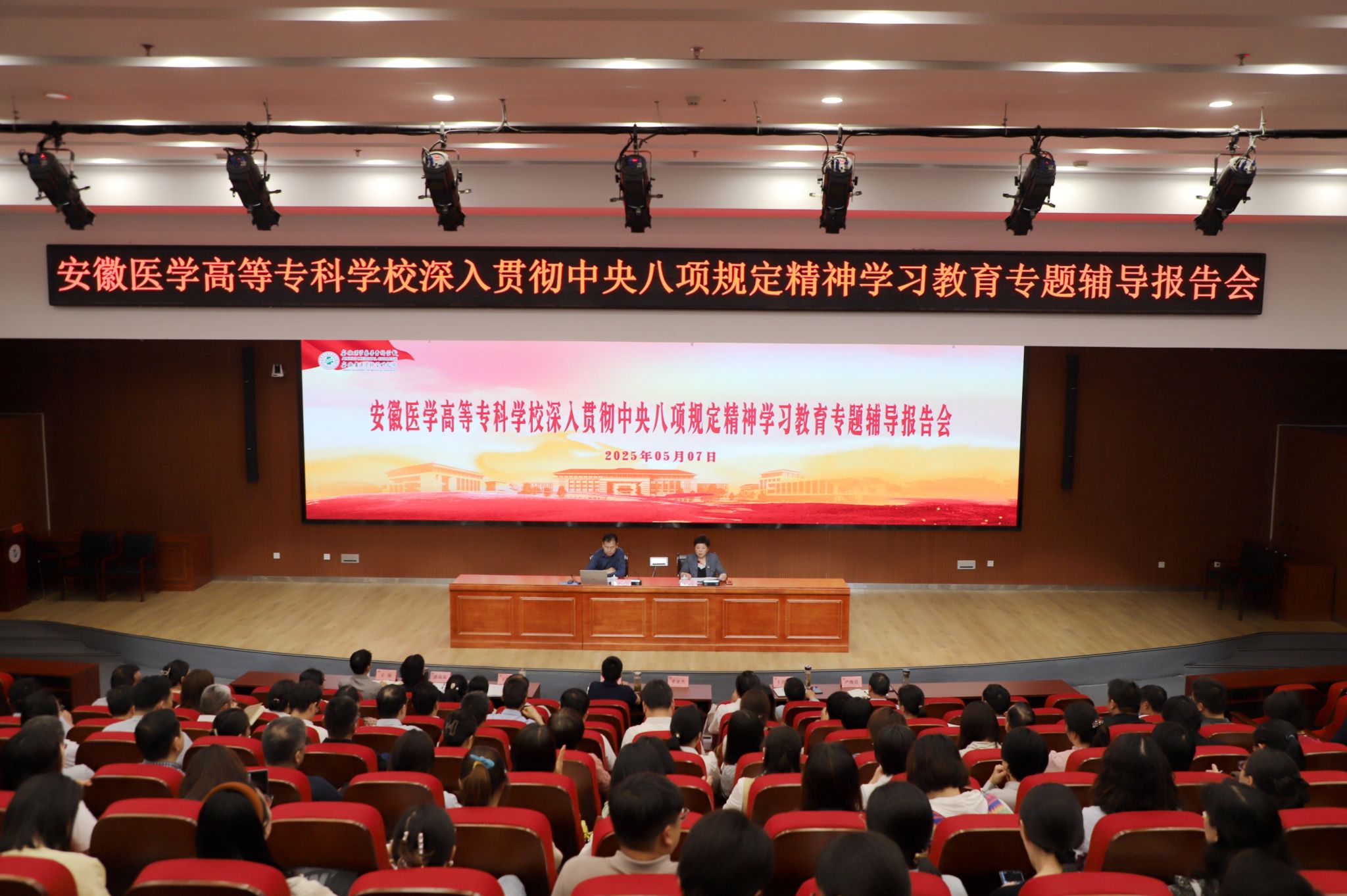 为推动深入贯彻中央八项划定精神学习教育走深走实,,,,,,,,5月7日下昼,,,,,,,,学校举行深入贯彻中央八项划定精神学习教育专题向导报告会,,,,,,,,约请省卫生康健委党组成员、省纪委监委驻省卫生康健委纪检监察组组长孙云同志作专题向导报告。。。。。。。。校党委书记董亚杰主持并讲话,,,,,,,,强调要切实增强贯彻落实中央八项划定及着实施细则精神的政治自觉、头脑自觉、行动自觉。。。。。。。。校党委副书记、校长吴文涌,,,,,,,,校党委副书记王劲松,,,,,,,,校党委委员、副校长王润霞、严继贵,,,,,,,,校党委委员、纪委书记潘焱焱出席聚会。。。。。。。。