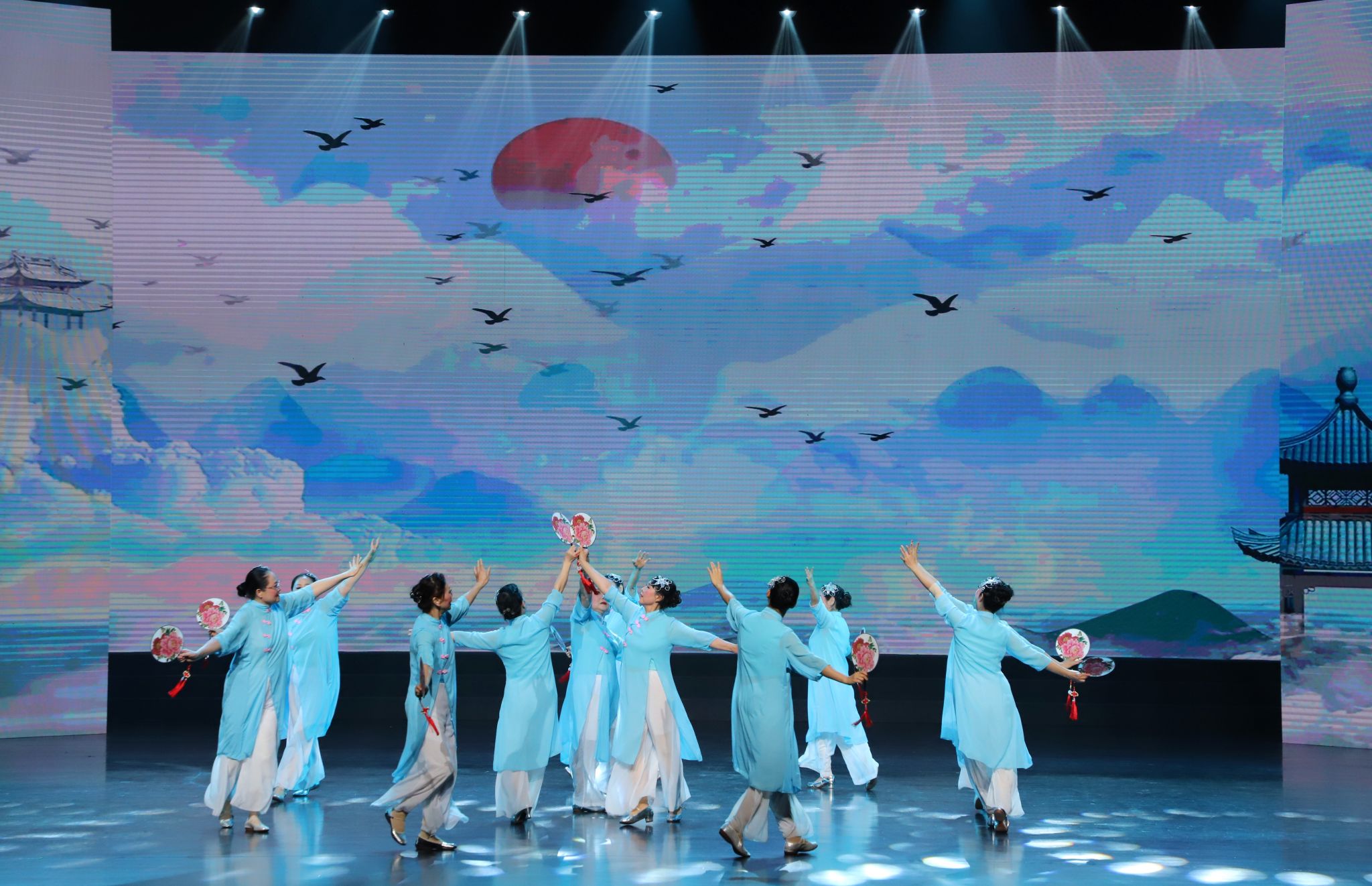 舞台上,,,,,,,,一束追光倾注而下,,,,,,,,身着萧洒纱裙的舞者们轻盈登场。。。。。。她们手中的水袖和折扇灵动翻飞,,,,,,,,似碧波激荡。。。。。。晚年大学舞蹈队学员们用优美的舞姿展示了《徽州美》奇异的韵味。。。。。。其演出融合了黄梅戏的声腔特色与舞蹈语言,,,,,,,,通过肢体韵律构建视觉美感,,,,,,,,将委婉唱腔与肢体行动团结,,,,,,,,推动古板美德融入今世价值观塑造,,,,,,,,诠释了古板文化在今世社会治理中的生命力。。。。。。现场观众无不陶醉于这份新闻相宜的协调之美中,,,,,,,,报以热烈的掌声。。。。。。