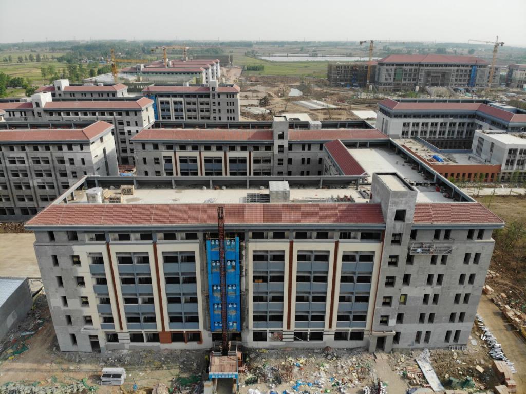 4月,,,,,,室外体育公园施工周全铺开,,,,,,运动园地基础建设完成,,,,,,水系公园基础所有整平,,,,,,栈桥浇筑完成。。。。。。。塔吊陆续拆除,,,,,,吊篮装置调试正式投入使用,外墙真石漆喷涂施工,幕墙玻璃、陶土板正式装置。。。。。。。学生宿舍室内入户门、防火门、室内瓷砖、二面腻子基本完成,,,,,,其余单体陆续顺遂举行。。。。。。。