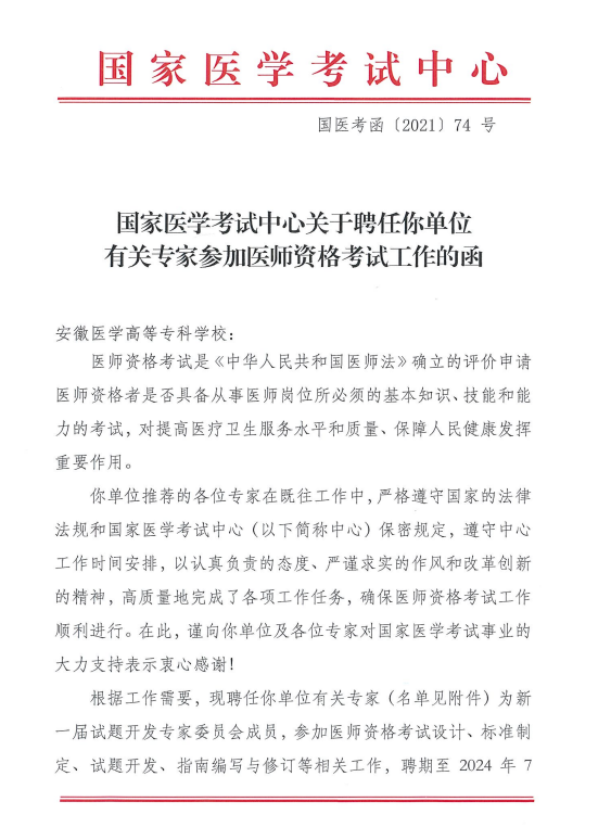 我校朱霖、王万荣、刘付一律7名同志再次被国家医学考试中心聘用为国家医师资格考试新一届试题开发专家委员会成员,,,,,,,加入医师资格考试设计、标准制订、试题开发、指南编写与修订等事情,,,,,,,其中吴俊先生获聘为国家医师资格考试机考手艺专家。。。。。。。。