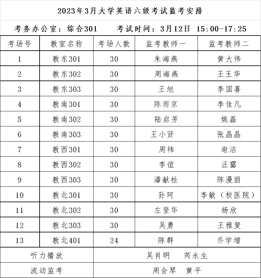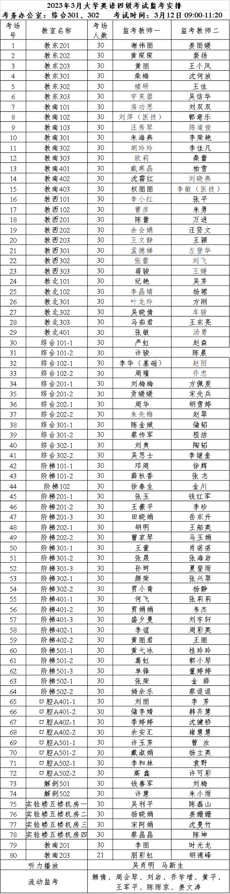 2022年下半年天下大学英语四、六级考试加考(3月)巡考、考务及监考安排