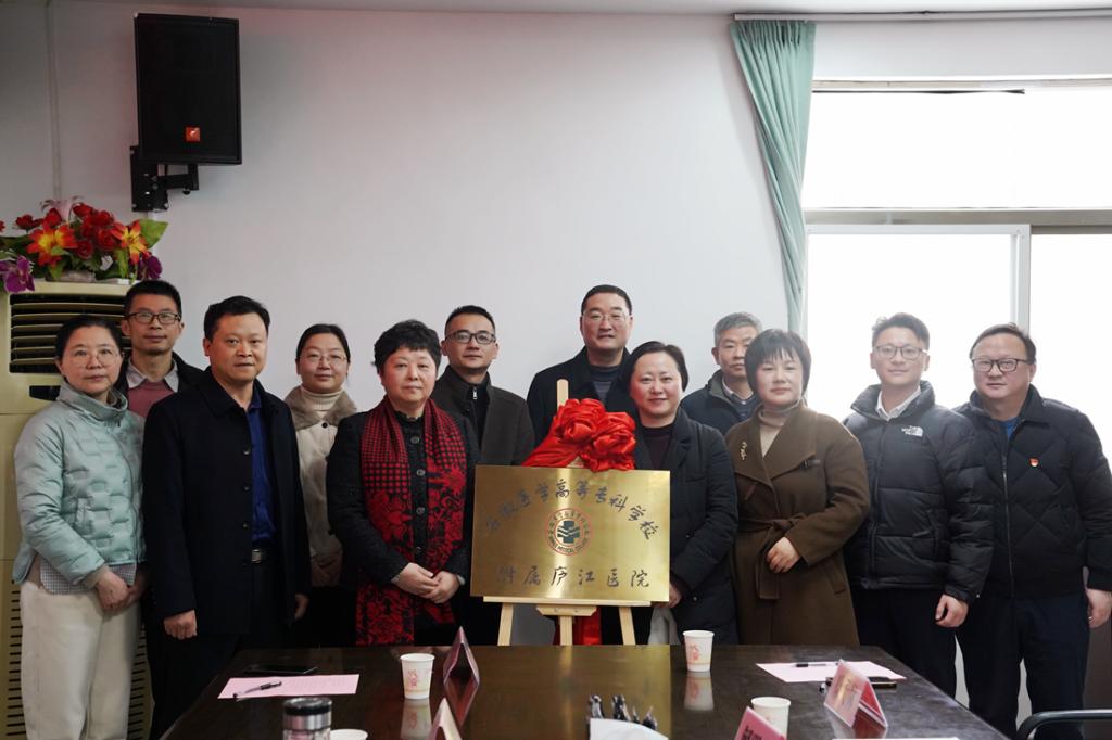 1月30日,,,,,我校与庐江县人民医院举行非直属隶属医院签约揭牌仪式。。。。。。。。我校党委书记董亚杰,,,,,党委委员、副校长严继贵,,,,,庐江县人民政府副县长仇祝平,,,,,庐江县卫健委党委书记、主任高慧玲,,,,,庐江县政府办副主任解明志,,,,,庐江县人民医院向导班子全体成员以及我校相关部分认真人出席签约揭牌仪式。。。。。。。。