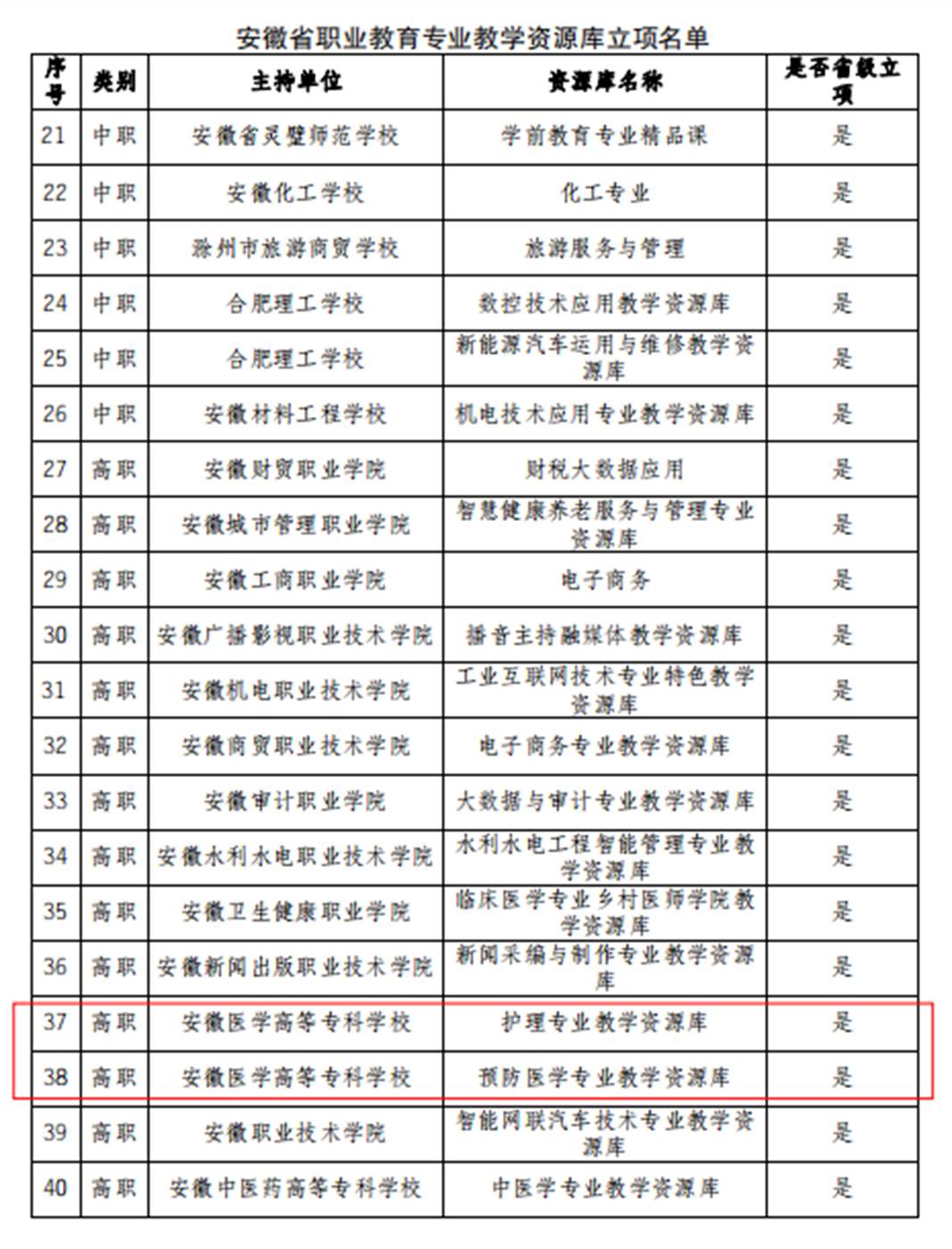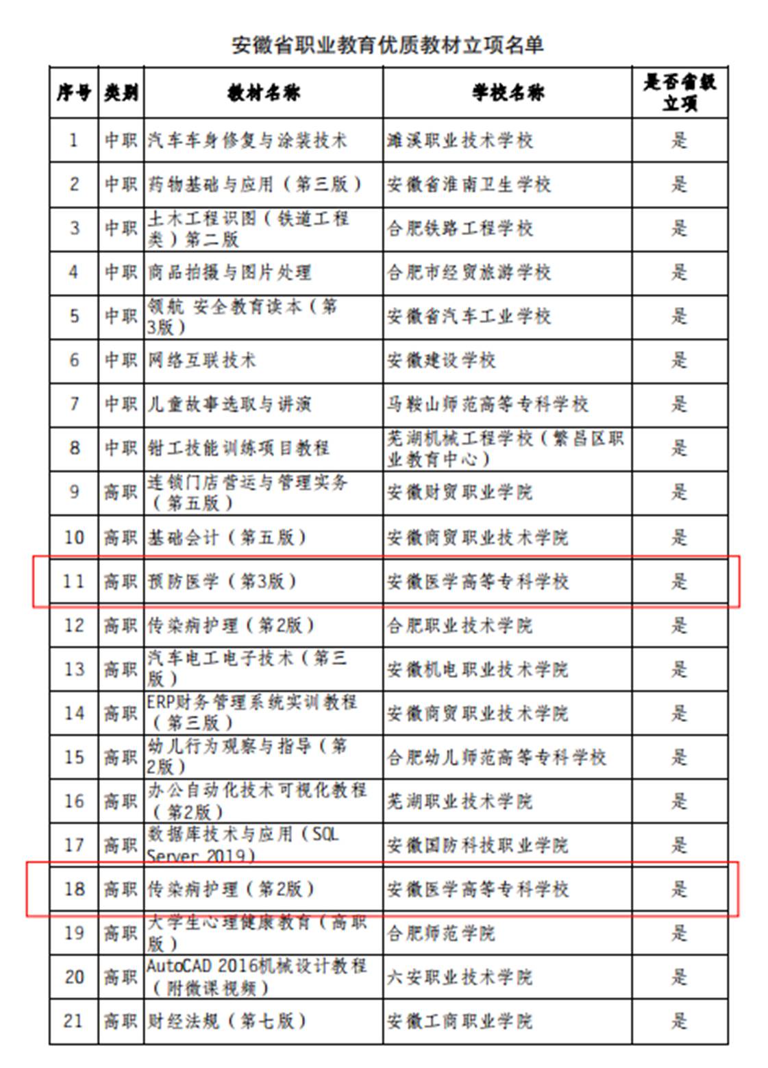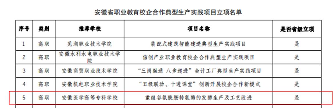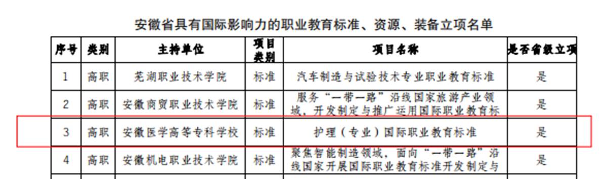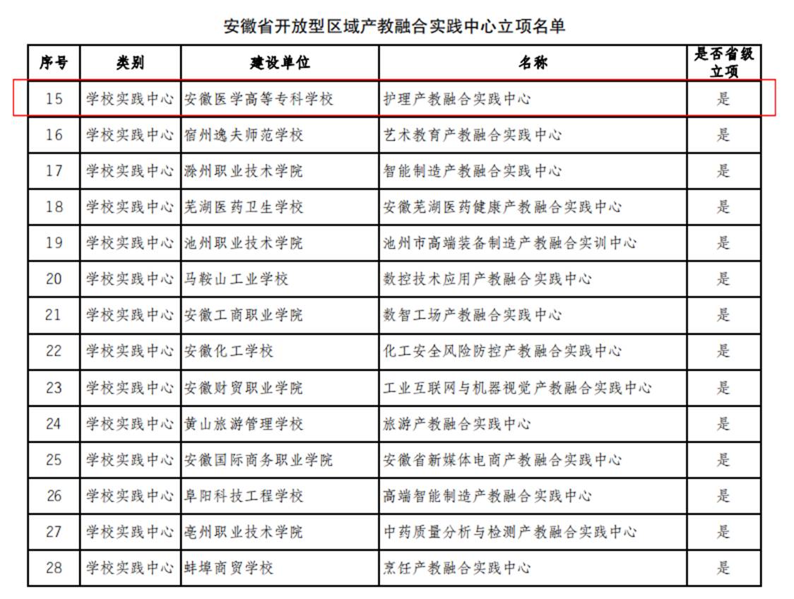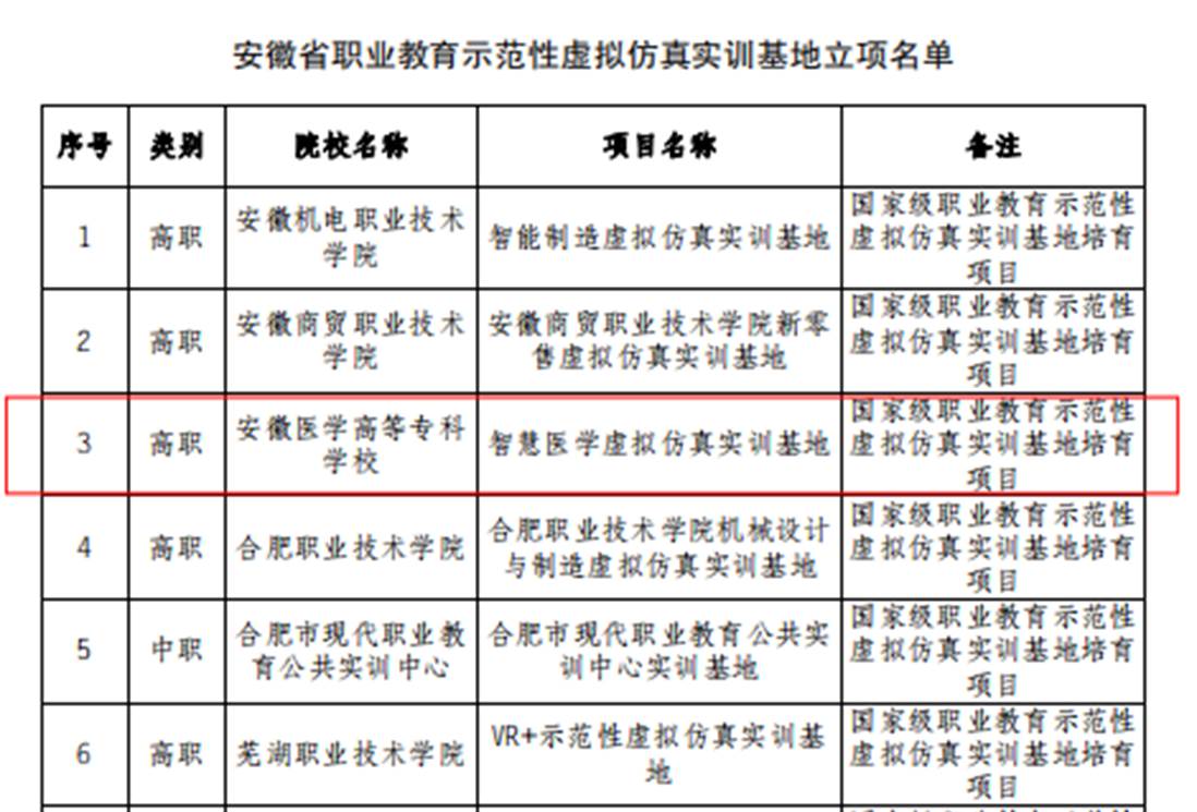 克日,,,,,安徽省教育厅宣布《安徽省教育厅关于宣布安徽省现代职业教育教育系统建设刷新重点使命立项名单的通知》(皖教秘职成〔2024〕11号),,,,,我校多项申报项目获得立项。。。。。。。。划分是建设开放型区域产教融合实践中心1个;;;;;职业教育专业教学资源库2个;;;;;职业教育信息化标杆学校;;;;;职业教育树模性虚拟仿真实训基地1个;;;;;职业教育一流焦点课程(线下)1门;;;;;职业教育优质课本5本;;;;;职业教育校企相助典范生产实践项目1个;;;;;具有国际影响力的职业教育标准、资源、装备1个;;;;;具有较高国际化水平的职业学校。。。。。。。。