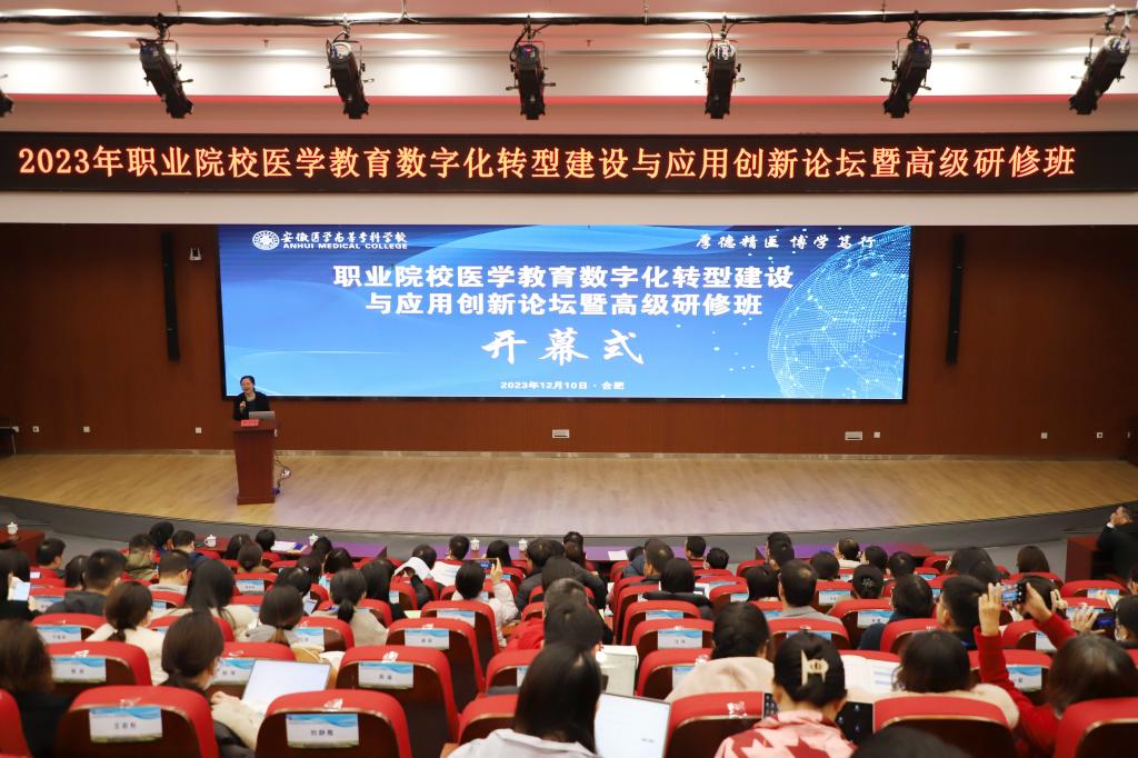 2023年12月9-11日,,,,,由国家职业教育虚拟仿真树模实训基田主理,,,,,安徽医学高等专科学校承办的2023年职业院校医学教育数字化转型建设与应用立异论坛暨高级研修班在我校新桥校区顺遂举行。。。。。加入本次论坛暨高级研修班的有来自天下38所职业院校和6所校企相助单位的80余名西席和专家学者。。。。。国家职业教育虚拟仿真树模实训基地运营总监李经智,,,,,南京医科大学国家级虚拟仿真实验教学中心主任兴奋亚,,,,,安徽医学高等专科学校党委委员、副院长严继贵等出席了开班仪式,,,,,开班仪式由我校党委委员、教务随处长朱霖主持。。。。。