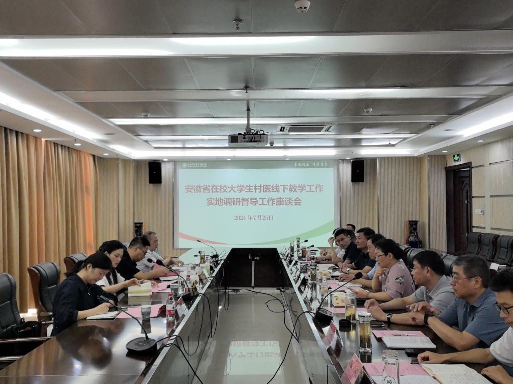 7月25日,,,,,,,,省教育厅、省卫生康健委、相关作育院校团结组成的调研督导组到我校调研在校大学生村医线下教学事情实验情形。。。。。。校党委委员、副校长严继贵,,,,,,,,教务处、学生处、总务处、守卫处、现教中心、临床医学院认真人以及西席和向导员代表加入了座谈会,,,,,,,,聚会由严继贵主持。。。。。。