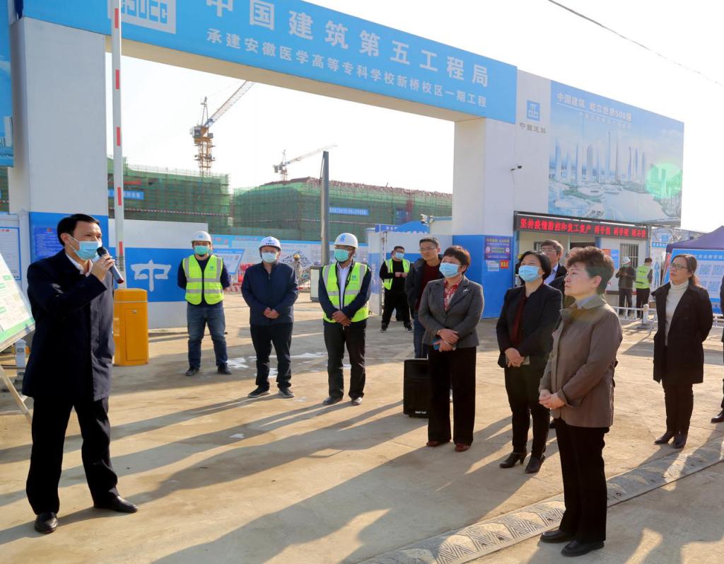 沈素琍一行深入我校新校校区一期建设工地,,,,,,实地相识项目疫情防控和复工复产情形。。。。。。。