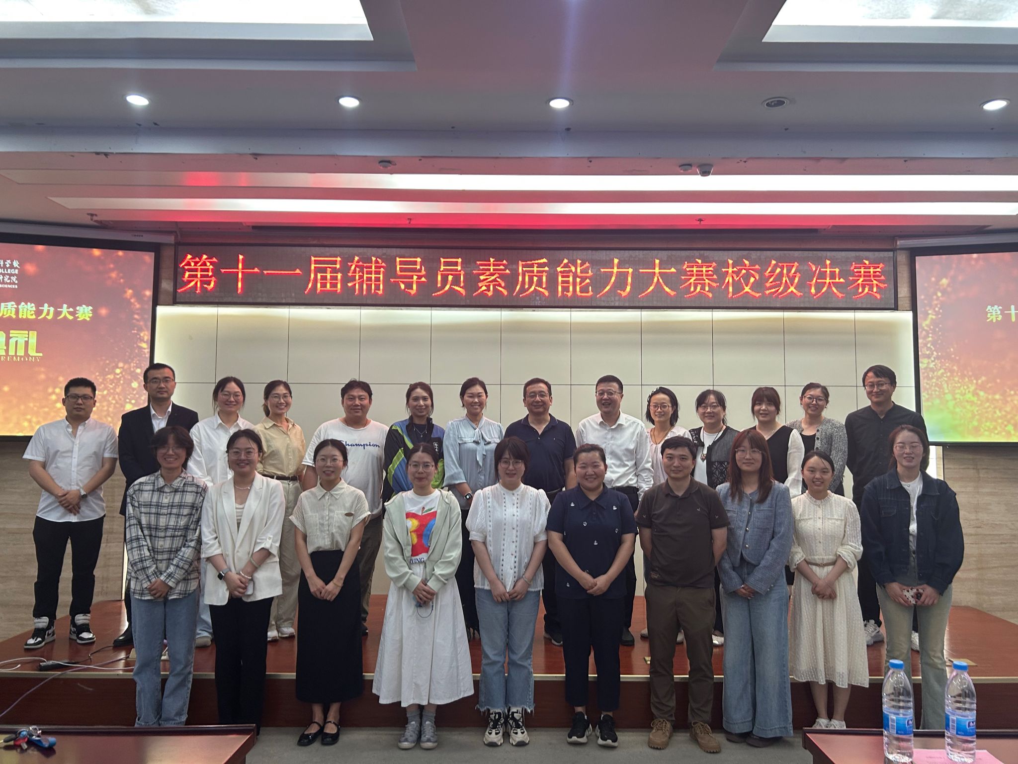 为深入学习贯彻习近平新时代中国特色社会主义头脑和党的二十大精神,,,,,,落实立德树人基础使命,,,,,,进一步推进向导员步队专业化、职业化建设,,,,,,5月23日下昼,,,,,,我校第十一届向导员素质能力大赛决赛在芙蓉路校区图书馆小报告厅圆满落幕。。。。。。。