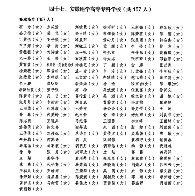 ƾ֤¡¶¹ØÓÚ¿ªÕ¹2023Äê°²»ÕÊ¡¸ßµÈѧУÓÅÒì½áÒµÉúÆÀÑ¡ÍÆ¼öÊÂÇéµÄ֪ͨ¡·ÒªÇ󣬣¬£¬£¬ £¬£¬£¬ÎÒУƾ֤¡°¹«Õý¡¢¹«Õý¡¢¹ûÕæ¡¢ÔñÓÅ¡±µÄÔ­ÔòºÍÆÀÑ¡Ìõ¼þ£¬£¬£¬£¬ £¬£¬£¬ÈÏÕæ¿ªÕ¹ÓÅÒì½áÒµÉúÆÀÑ¡ÊÂÇ飬£¬£¬£¬ £¬£¬£¬¾­Ñ§Ð£ÍÆÑ¡£¬£¬£¬£¬ £¬£¬£¬Ê¡½ÌÓýÌü¡¢Ê¡ÈËÁ¦×ÊÔ´ºÍÉç»á°ü¹ÜÌü¡¢¹²ÇàÍŰ²»Õʡί¸´ºËÈ϶¨£¬£¬£¬£¬ £¬£¬£¬ÎÒУ»£»£»£»£»£»£»ôÄîµÈ157ÃûͬÑâ±»ÆÀΪ¡°2023Äê°²»ÕʡͨË׸ߵÈѧУÓÅÒì½áÒµÉú¡±£¨Ãûµ¥¸½ºó£©¡£¡£¡£¡£¡£